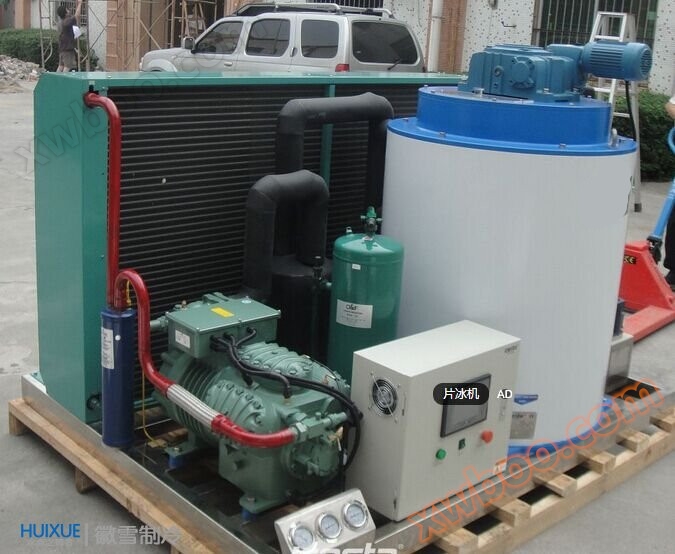 徽雪中型整体式片冰机配置:台或多台比泽尔(Bitzer)半封闭活塞压缩机,水冷冷却方式。